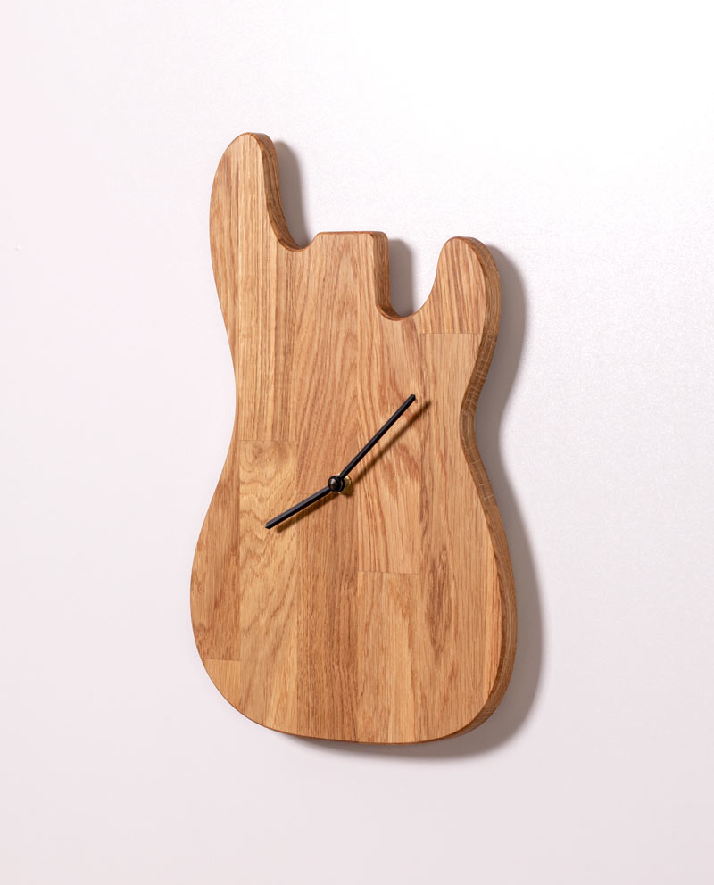 If everything is possible, what wood would you choose for your guitar clock? Exactly! That’s why all our guitar wall clocks are made of solid oak. European oak. Super strong, durable and it looks stunning. We applied a construction technique that adds strength and prevents warping. Combined with the organic guitar contour the result is a very classy and lively design.