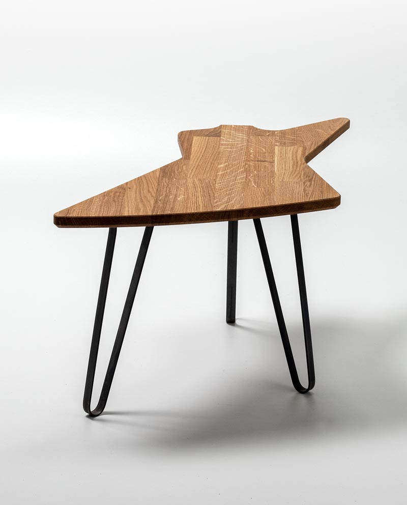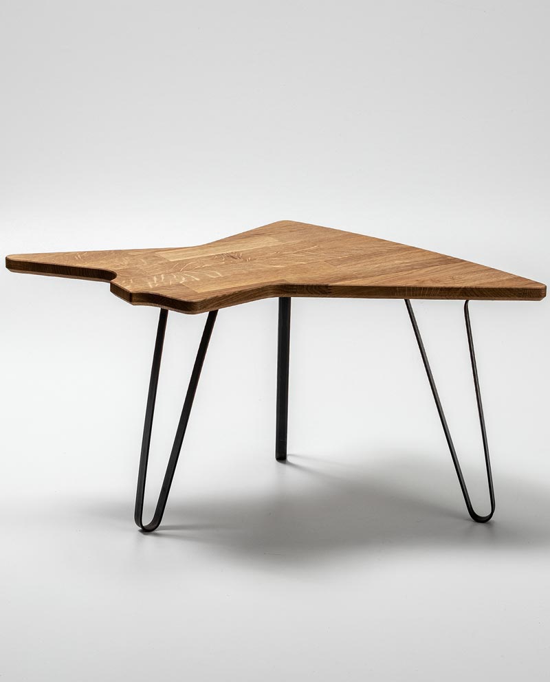 Als alles mogelijk is, welk hout zou u kiezen voor uw gitaartafel? Precies! Daarom zijn alle tafelbladen gemaakt van massief eiken. Europees eiken. Stevig, duurzaam en het ziet er prachtig uit. We hebben een constructietechniek toegepast die de sterkte vergroot en kromtrekken voorkomt. In combinatie met de organische gitaarcontour vormt dit een stijlvol en levendig ontwerp.