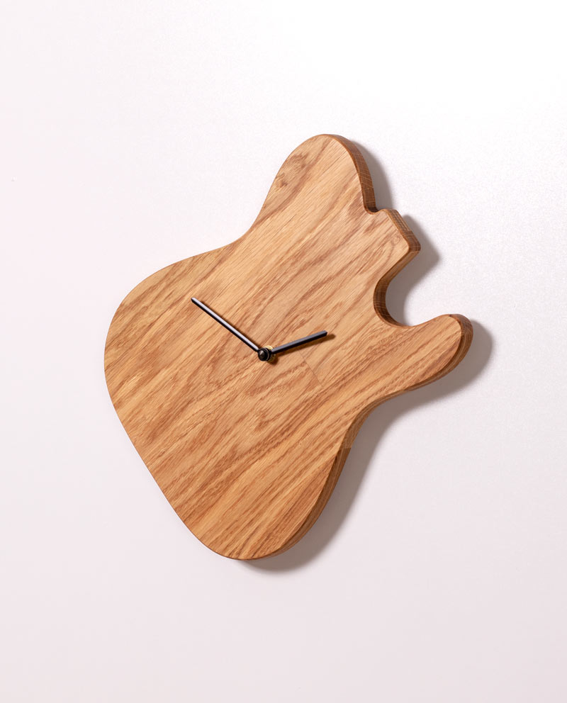 Als alles mogelijk is, welk hout zou u kiezen voor uw gitaarklok? Precies! Daarom zijn alle gitaarklokken gemaakt van massief eiken. Europees eiken. Stevig, duurzaam en het ziet er prachtig uit. We hebben een constructietechniek toegepast die de sterkte vergroot en kromtrekken voorkomt. In combinatie met de organische gitaarcontour vormt dit een stijlvol en levendig ontwerp.