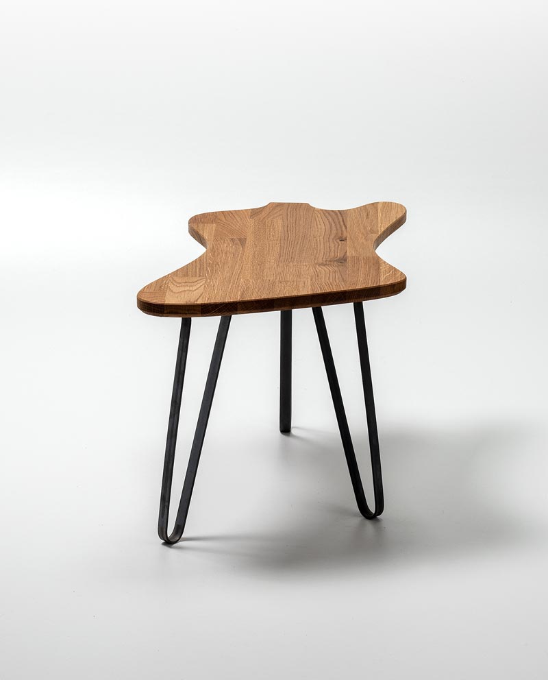 Als alles mogelijk is, welk hout zou u kiezen voor uw gitaartafel? Precies! Daarom zijn alle tafelbladen gemaakt van massief eiken. Europees eiken. Stevig, duurzaam en het ziet er prachtig uit. We hebben een constructietechniek toegepast die de sterkte vergroot en kromtrekken voorkomt. In combinatie met de organische gitaarcontour vormt dit een stijlvol en levendig ontwerp.