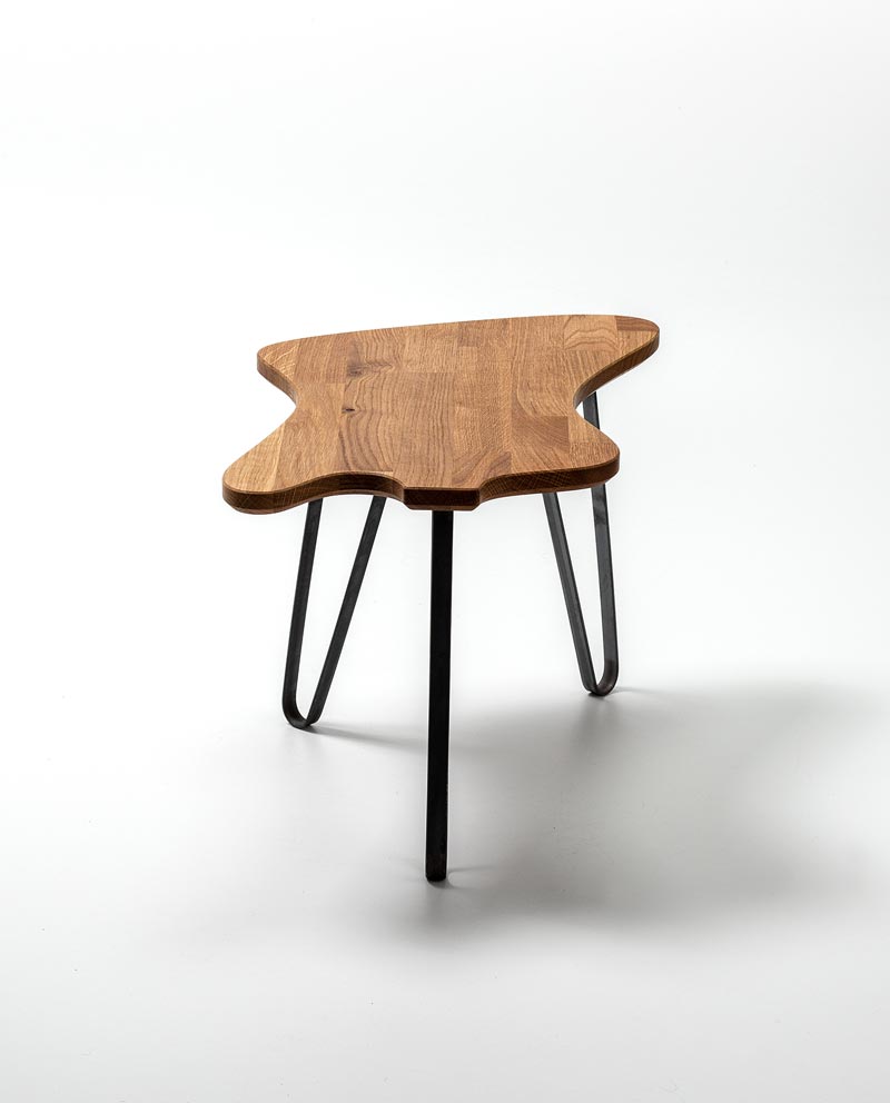 De tafelpoten zijn handgemaakt van warmgewalst staal. Het robuuste staal heeft een donkere grijs-blauwe tint die goed combineert met eiken. Van dichtbij zijn er kleine sporen zichtbaar van het productieproces, wanneer het staal nog roodgloeiend heet was. Dit effect zorgt voor extra karakter. Voor de nodige bescherming hebben we de tafelpoten behandeld met bijenwas.