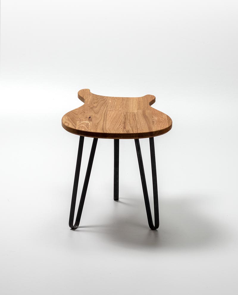 De tafelpoten zijn handgemaakt van warmgewalst staal. Het robuuste staal heeft een donkere grijs-blauwe tint die goed combineert met eiken. Van dichtbij zijn er kleine sporen zichtbaar van het productieproces, wanneer het staal nog roodgloeiend heet was. Dit effect zorgt voor extra karakter. Voor de nodige bescherming hebben we de tafelpoten behandeld met bijenwas.