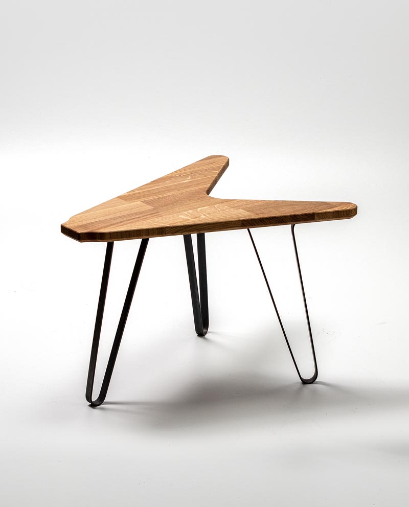 The legs are handmade of raw hot rolled steel. Robust steel with a much appreciated dark grey/blue shine that combines greatly with oak. If you look closer some small hints of the production process, when the steel was glowing red hot, are still visible and add to the character of the table. To preserve the legs we treated the steel with beeswax.