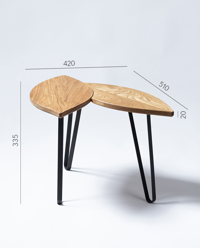 We hebben het hout behandeld met natuurlijke houtolie (zonder oplosmiddelen), zodat de rijke kleur, structuur en houtnerf van het hout optimaal naar voren komt. De combinatie van de organische vorm met de rechte metalen poten zorgt voor een levendig design. Daardoor past deze bijzettafel in nagenoeg ieder interieur en/of plantkamer.