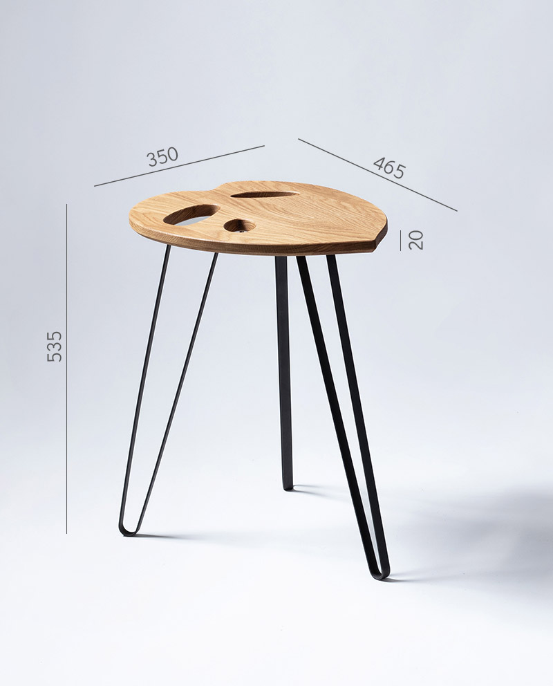 We hebben het hout behandeld met natuurlijke houtolie (zonder oplosmiddelen), zodat de rijke kleur, structuur en houtnerf van het hout optimaal naar voren komt. De combinatie van de organische vorm met de rechte metalen poten zorgt voor een levendig design. Daardoor past deze bijzettafel in nagenoeg ieder interieur en/of plantkamer.