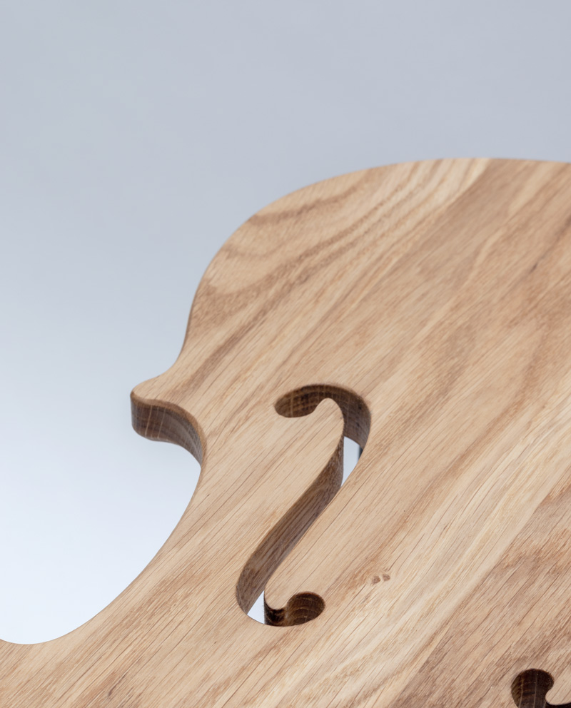 Eiken bijzettafel in de vorm van een viool/cello.