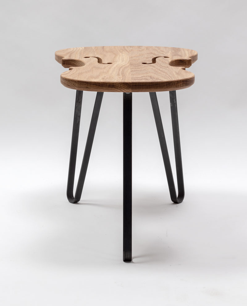 De tafelpoten zijn handgemaakt van warmgewalst staal. Het robuuste staal heeft een donkere grijs-blauwe tint die goed combineert met eiken. Van dichtbij zijn er kleine sporen zichtbaar van het productieproces, wanneer het staal nog roodgloeiend heet was. Dit effect zorgt voor extra karakter. Voor de nodige bescherming hebben we de tafelpoten behandeld met bijenwas.